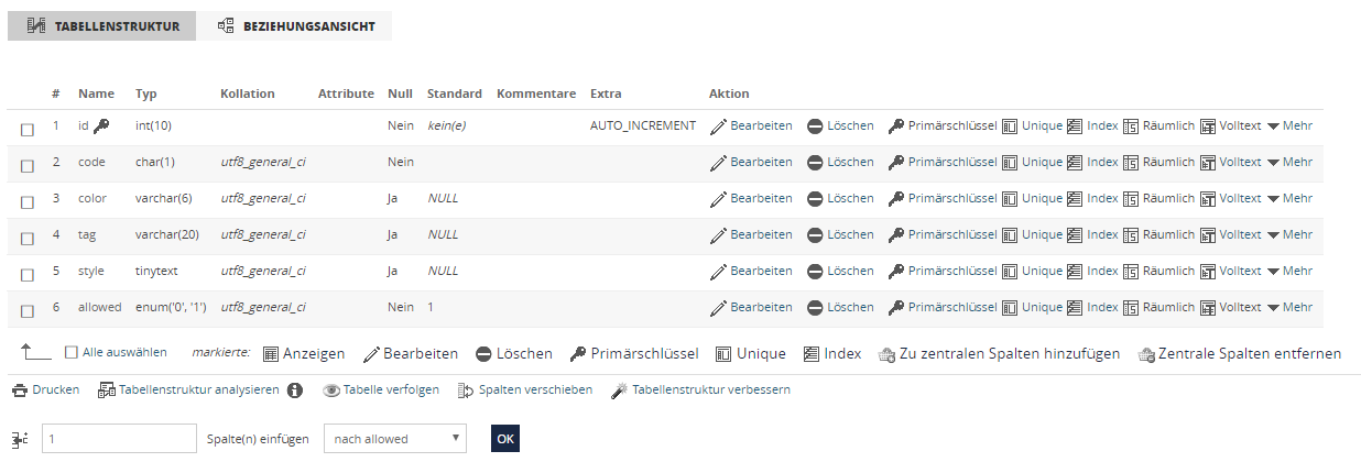 Nun hab ich aber hauptsächlich das Problem, dass in den Farbcodes die Sonderzeichen wohl korrekt in der DB gespeichert, aber falsch angezeigt werden und somit unbrauchbar sind.
